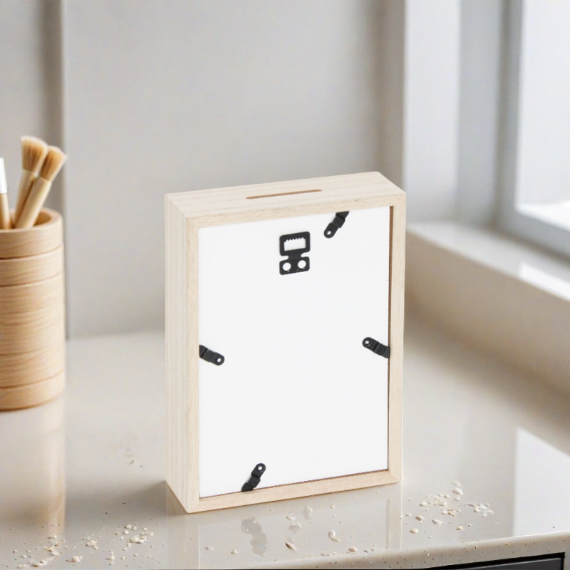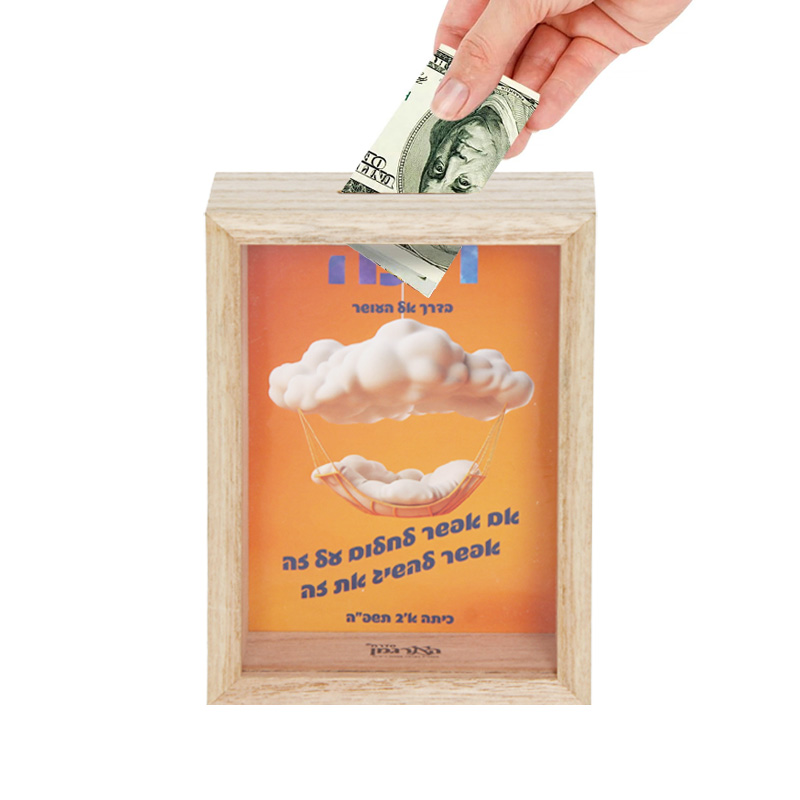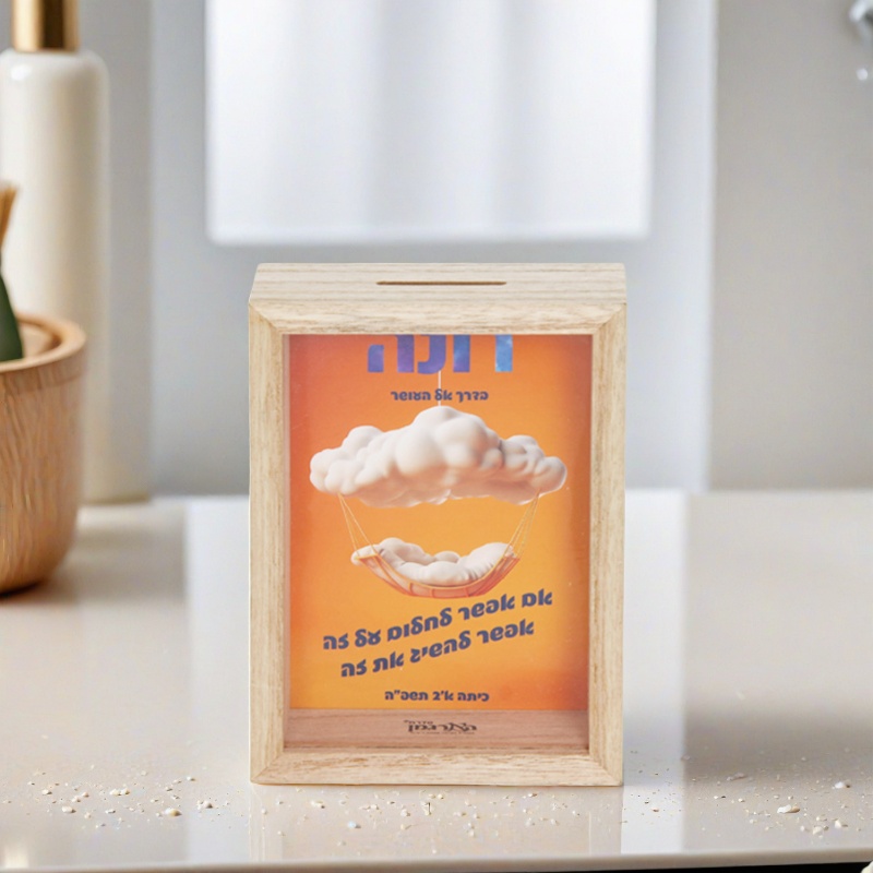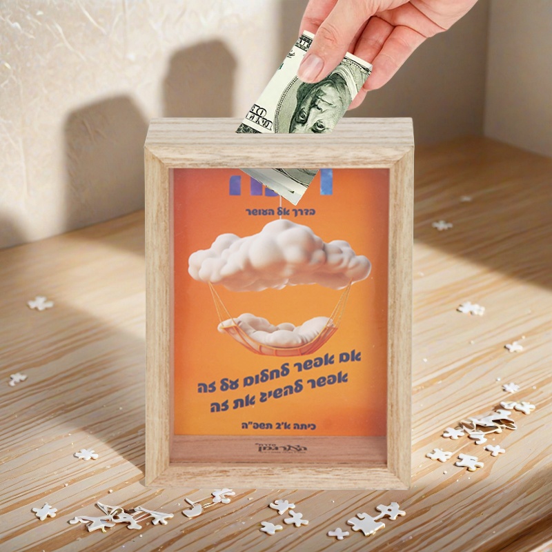 קופת חיסכון איכותית מעץ טבעי עם חזית שקופה עם שם הילד/ה – לא שביר!