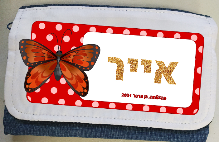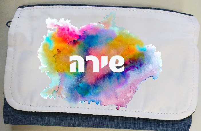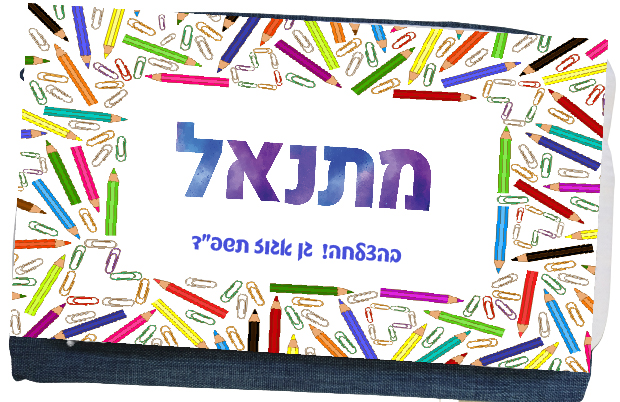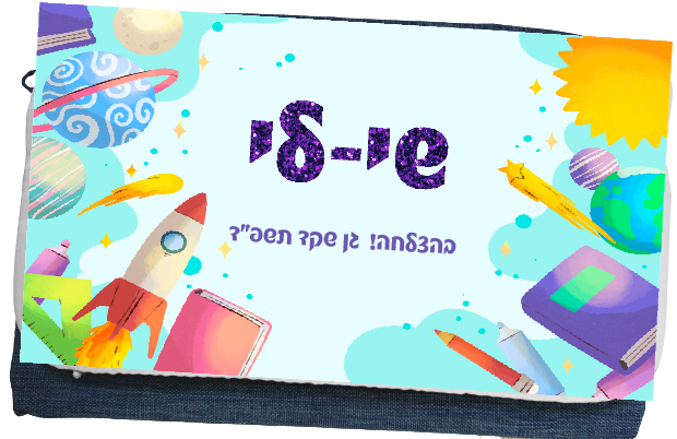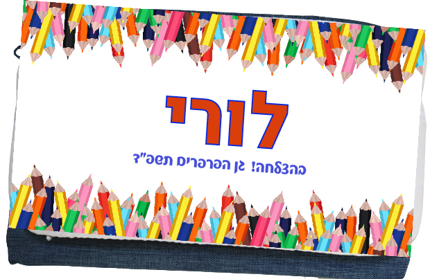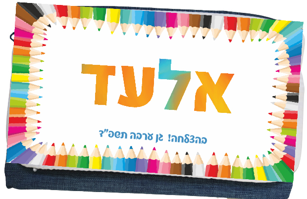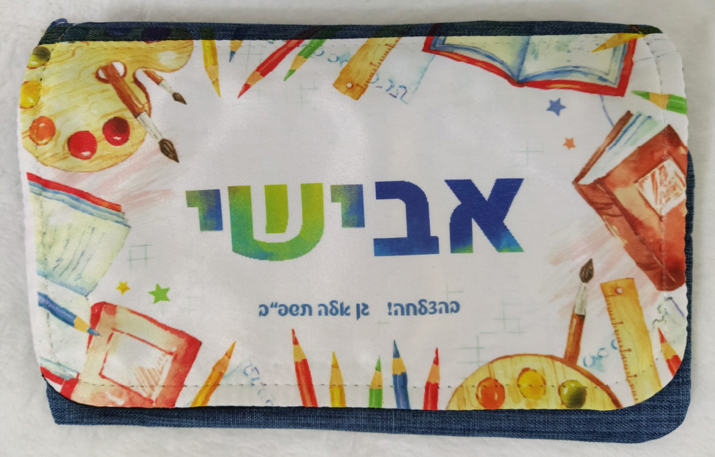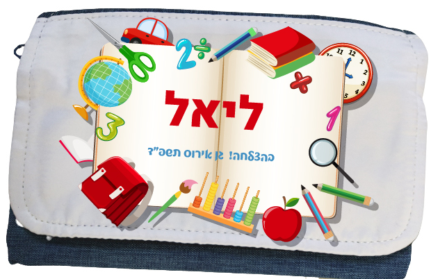 קלמר ג'ינס עם הדפסה ושם הילד/ה עם 3 תאים עם רוכסנים, גודל 20X13