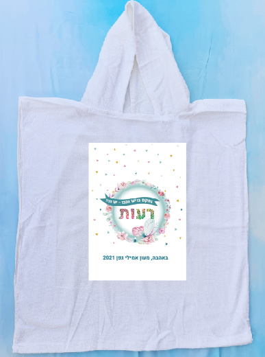 מגבת פונצ'ו 100% כותנה עם שם 38-42 שח