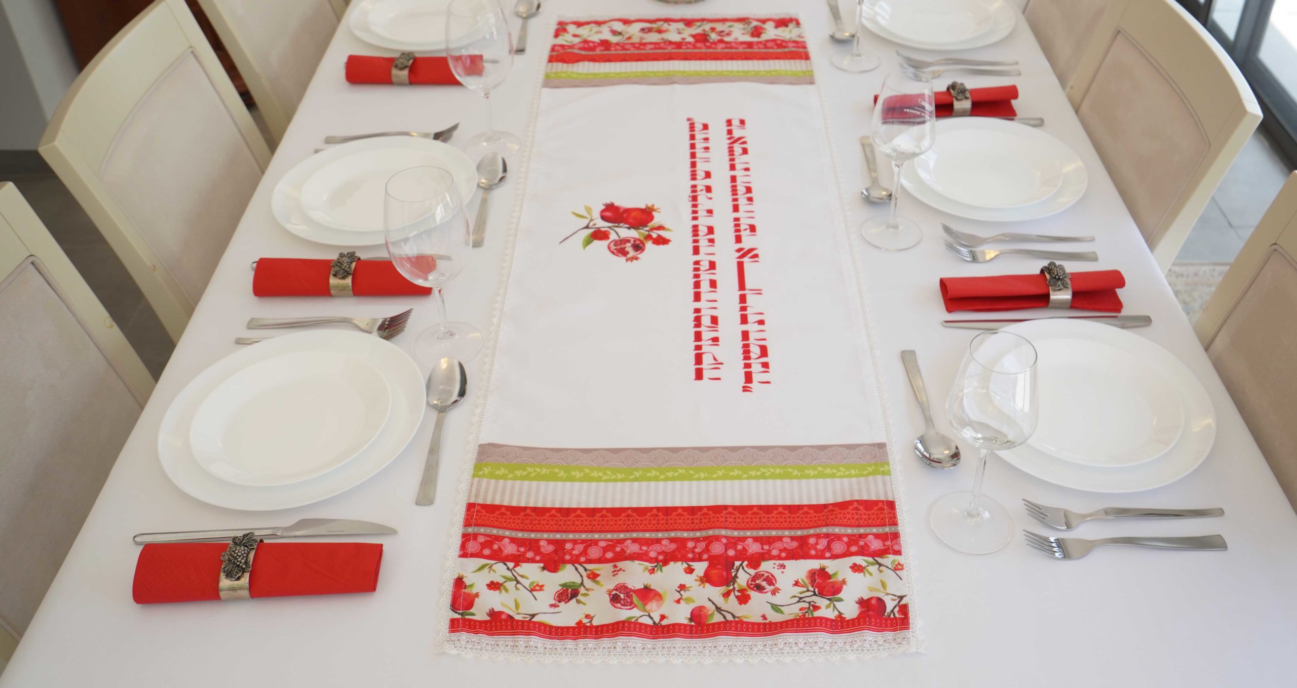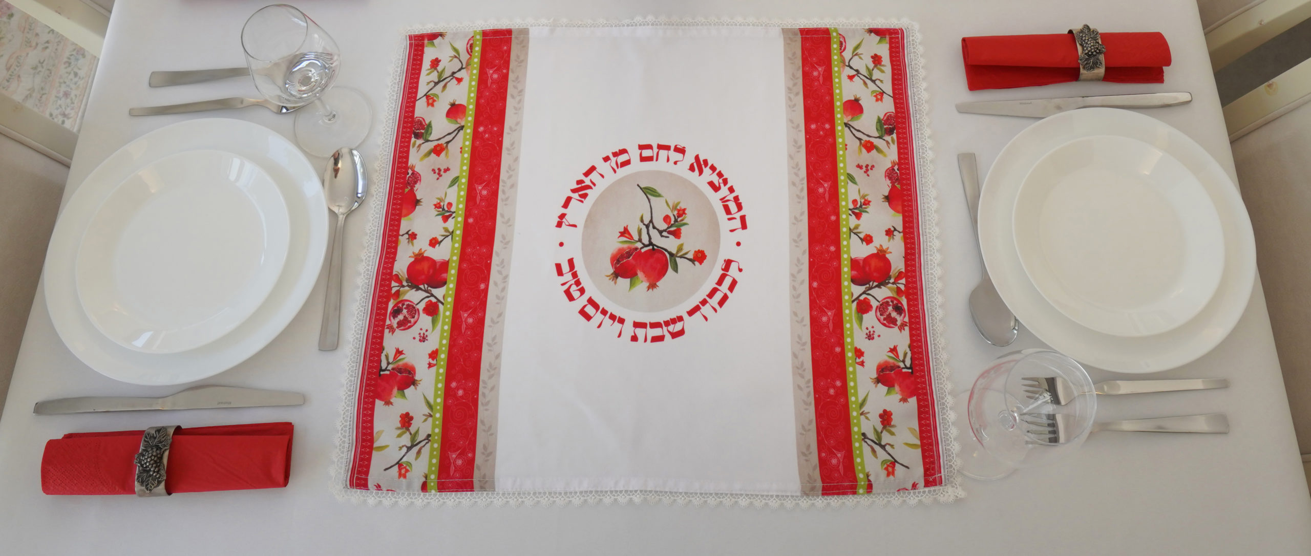 ראנר לשולחן חג וכיסוי חלה תואם