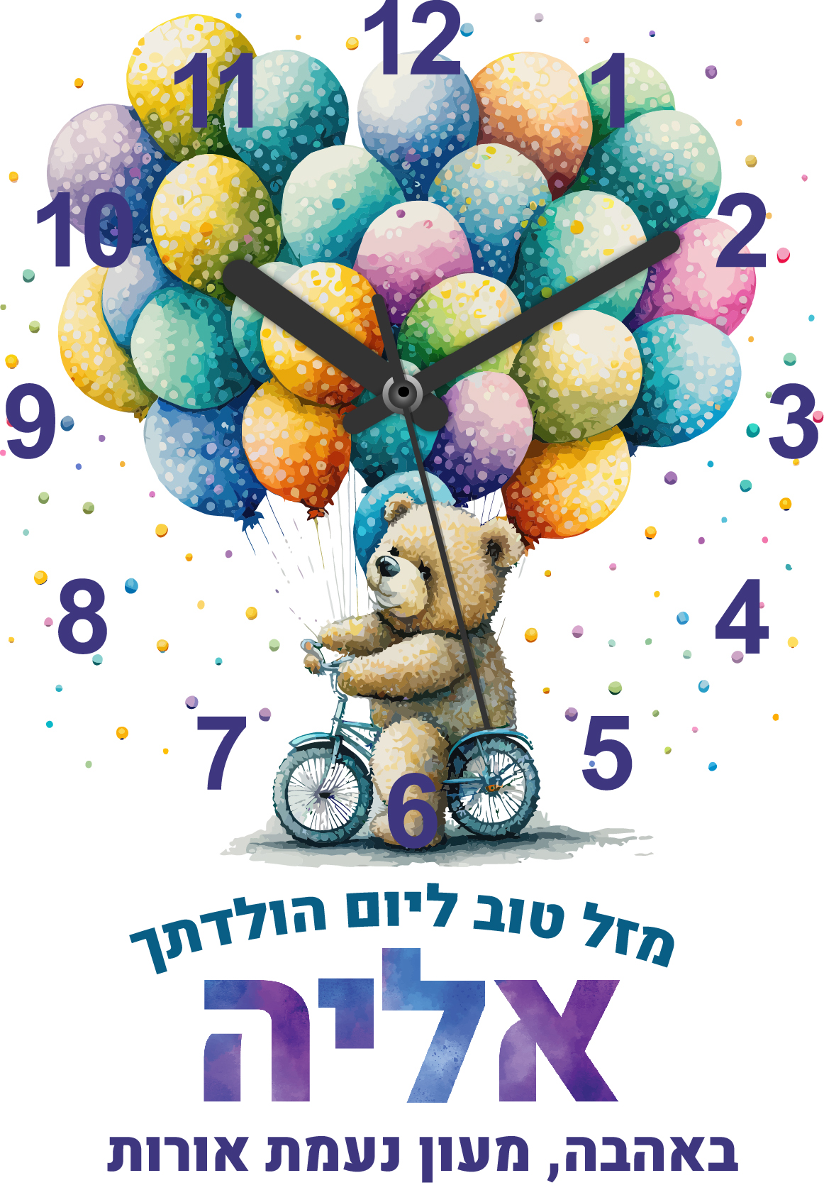 שעון קיר אישי עם שם הילד/ה,