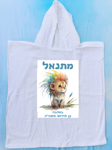 מגבת פונצ'ו 100% כותנה עם שם 38-42 שח