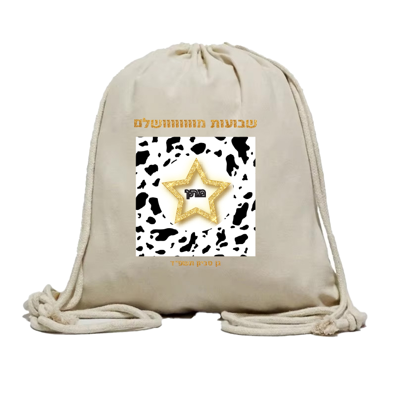 תיק שרוכים איכותי מקנבס, עם הדפסה ושם הילד/ה, כביס, לשימוש רב פעמי