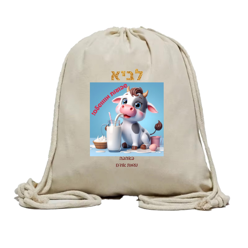 תיק שרוכים איכותי מקנבס, עם הדפסה ושם הילד/ה, כביס, לשימוש רב פעמי