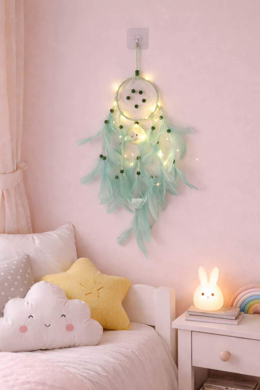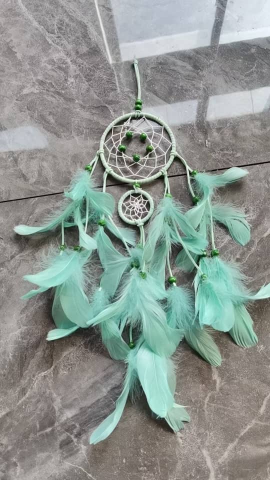 זמין בכחול אינדיגו או סגול לילך או ירוק מנטה, מקושט בחרוזי עץ.